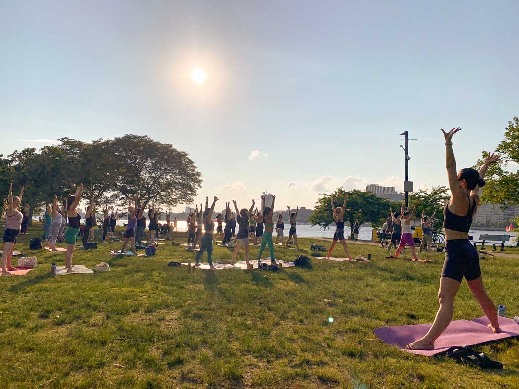 2023 Summer River Fit CorePower Yoga class on Fiedler Field.